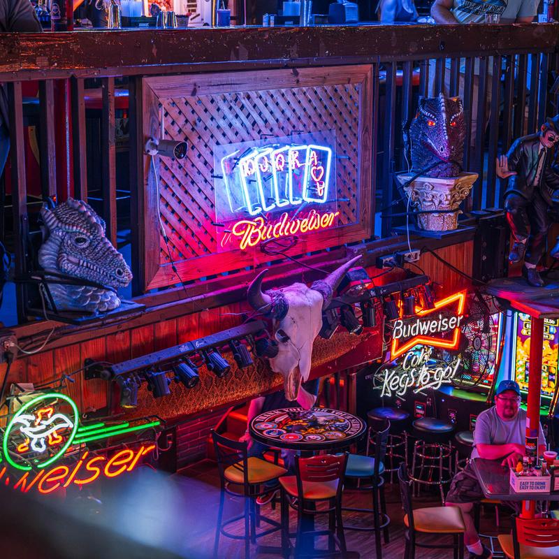 It's seems like a biker-ish bar that mostly locals go to. Cheap beer, mixed drinks, and good bar food with events/music most nights. Monday was dirty bingo, which was entertaining. Had the seafood platter and everything on it was good. Most people I saw were getting wings or other apps.